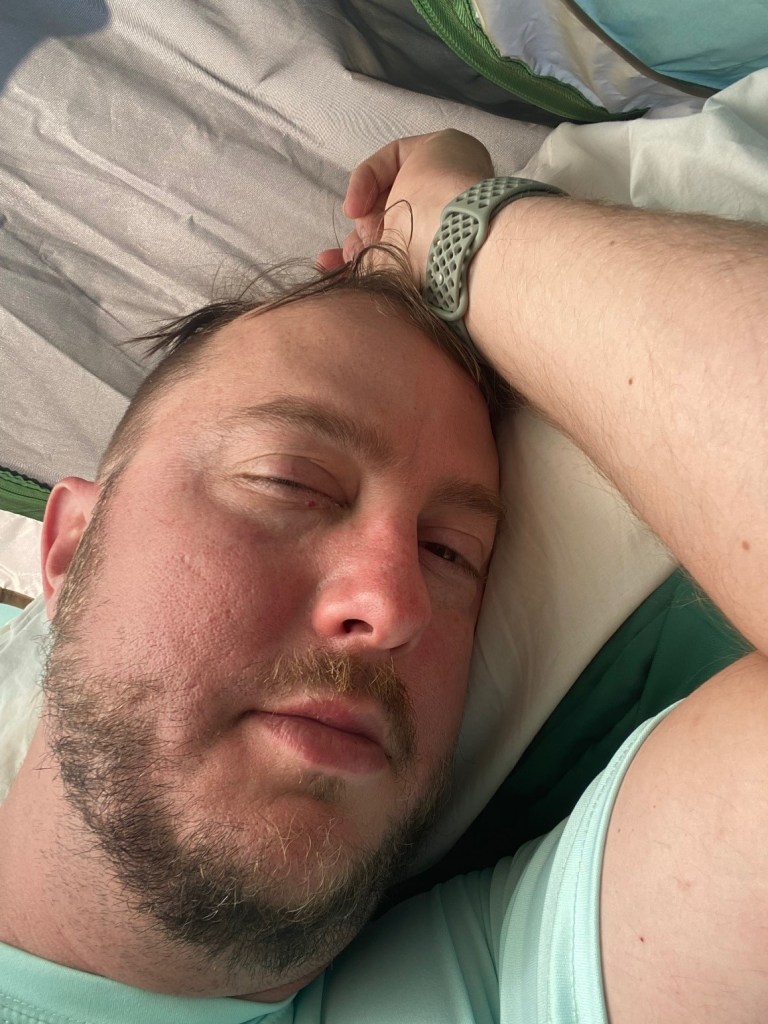 At this point I began reassessing my goals. I never thought my inability to sleep would do me in at an endurance race. But that is where I found myself. At around 5 p.m. that day, I left the fairgrounds again and drove into a local diner in Newton to eat a normal meal. I was looking for anything to help me sleep. I had been taking melatonin gummies and depriving myself of alcohol for well over 30 hours at this point. I came back to the fairgrounds and propped my feet up and tried to relax. Frustration does not adequately describe where my headspace was at during this time. I took another shower and finally, at 9 p.m. I fell asleepto sleep for 4 hours.